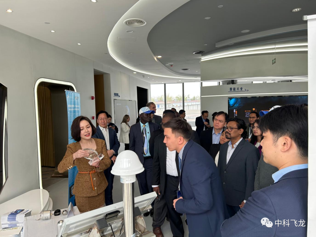 当日下午,气象相关展会在中国气象谷相风台举行。中科飞龙作为富景天策信大研究院核心成员参与接待世界气象组织多国别气象局长考察团,并推介其核心自主技术的雷电早期预警系统及MEMS电场传感器相关产品,国外气象同行高度关注,积极了解技术细节并表达合作意愿。