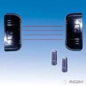 主动红外传感器的发射机发出一束经调制的红外光束,被红外接收机接收,从而形成一条红外光束组成的警戒线。当遇到树叶、雨、小动物、雪、沙尘、雾遮挡则不应报警,人或相当体积的物品遮挡将发生报警。