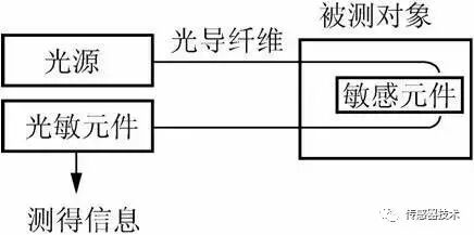 是利用其它敏感元件感受被测量的变化,光纤仅作为信息的传输介质,常采用单模光纤。光纤在其中仅起导光作用,光照在光纤型敏感元件上被测量调制。