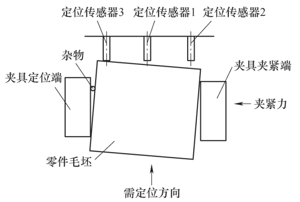 工件在加工过程中,应始终保持正确的定位,夹紧装置应提供足够的夹紧力,以抵抗加工过程中切削力对毛坯的作用,保持毛坯的位置精准,保证最终的零件符合设计要求。但是在某些情况下,比如加工过程中刀具磨损或崩裂、产生振动和颤动等,会致使切削力异常增大,夹紧疲劳失效,进而导致毛坯发生位移,偏离正确的位置,使定位失效。如果系统不能及时感知工件的定位失效,不能及时执行纠正而继续进行加工的话,将会使最终的工件产生较大的精度误差,严重时可能使工件报废。