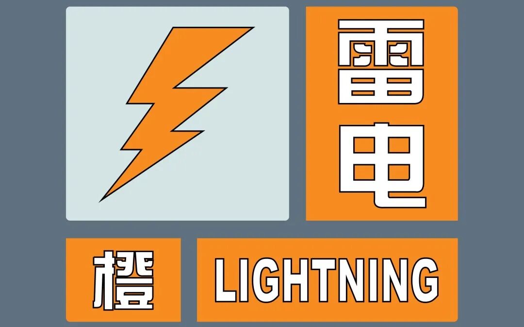 雷电预警信号分三级,分别以黄色、橙色、红色表示。